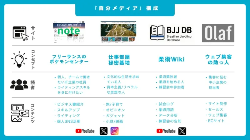 この3年間で、僕の発信の形は何度も変わりました。X(2つ)、note、ブログ、Youtube、Facebook。