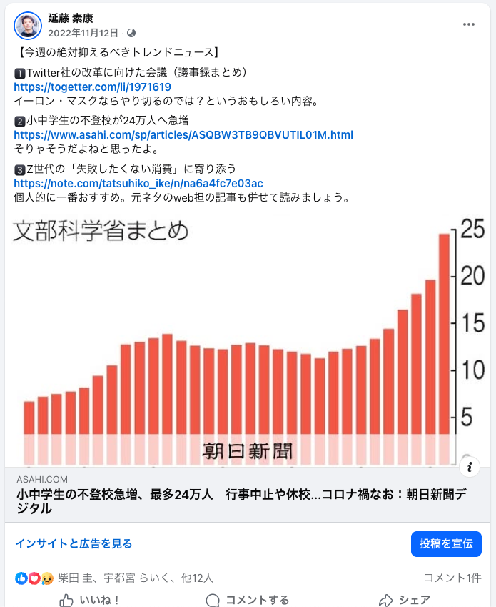 3年前(2022年)、コロナ禍がまだ落ち着かない頃に不登校が急増しました。